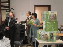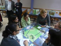 Ensuite, Mme Scieur, des Editions Erasmes-Averbode, nous expliqua la genèse du jeu et les partenaires impliqués dans son élaboration. Elle nous décrit également les objectifs, les règles et le fonctionnement d'une partie.