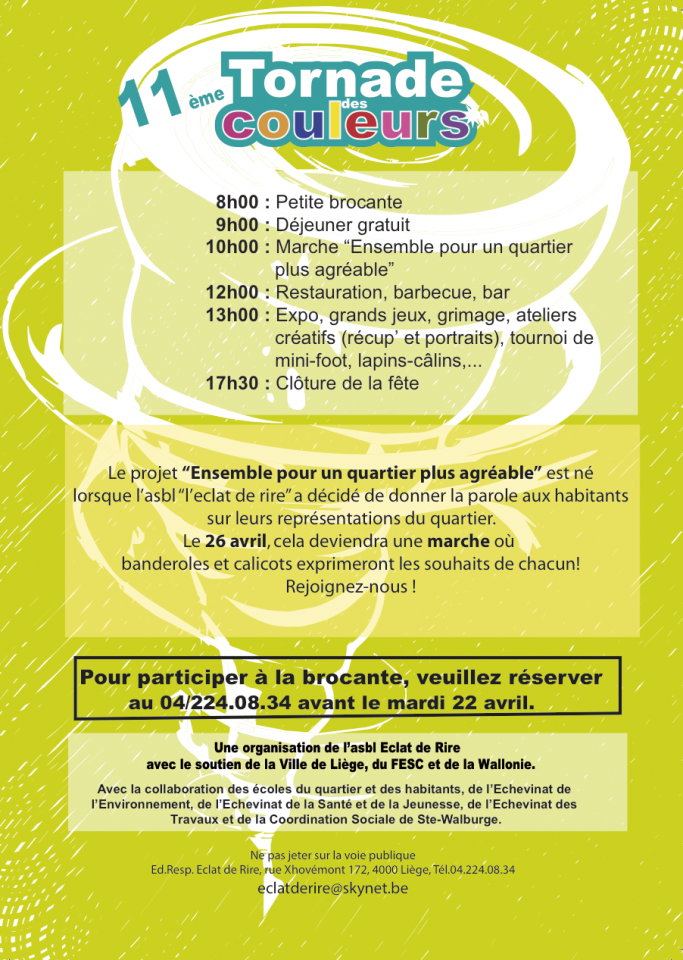 Après ce rassemblement citoyen, la fête sera au rendez-vous et le quartier sera plus que jamais multicolore. Animations, jeux, sports, découvertes, concerts, ... Un rendez-vous à ne pas manquer, pour les petits comme pour les grands.