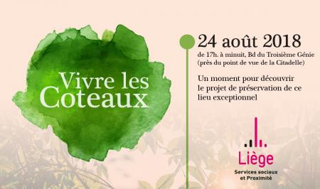Vivre les Coteaux est un projet mené à l’initiative de la Ville de Liège (services Proximité, Tourisme, Propreté et Prévention) en étroite collaboration avec les associations socioculturelles concernées par la préservation des Coteaux de la Citadelle et l’amélioration du cadre de vie de ses habitants (La Ferme de la Vache, le Terrain d’Aventure du Péri, Sauvegarde et Avenir des Coteaux, les amis de la Chapelle Saint-Roch, la Dynamique Pierreuse, Favechamps, la Ferme des Enfants, la Casa Nicaragua, la Maison Médicale de Saint-Léonard, la Cité s’invente et la Maison de l’Urbanité).