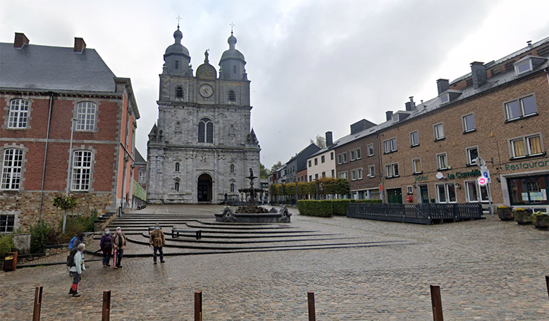 La place de l’abbaye a été rénovée en 2010, le bureau d’études a choisi un revêtement continu pour mettre en valeur la basilique. © Suède36.